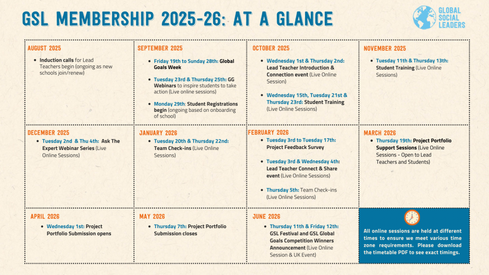 Our bespoke leadership and social action programme is for schools that share our vision to equip young people with the skills and mindsets to become socially conscious leaders in their lives and communities! Through this programme, students embark on a journey to design and deliver social action projects aligned to the United Nation’s Sustainable Development Goals (SDGs).